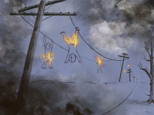 But I’ve started to wonder, could it be that we’re the one with smoking pants in a precarious situation? The liar isn’t the one about to be consumed by flames. We are. Because we believed the lies, we are the smoking ones strung out across a great divide.